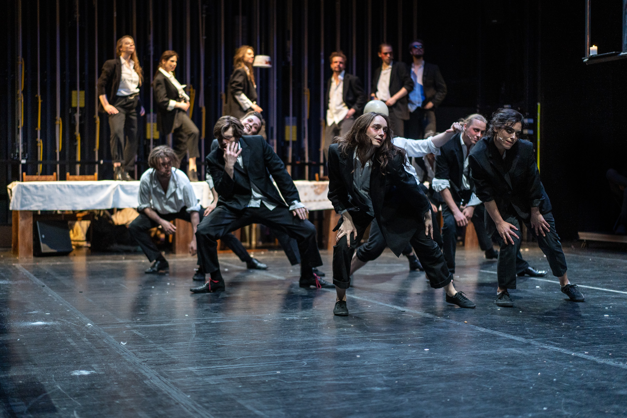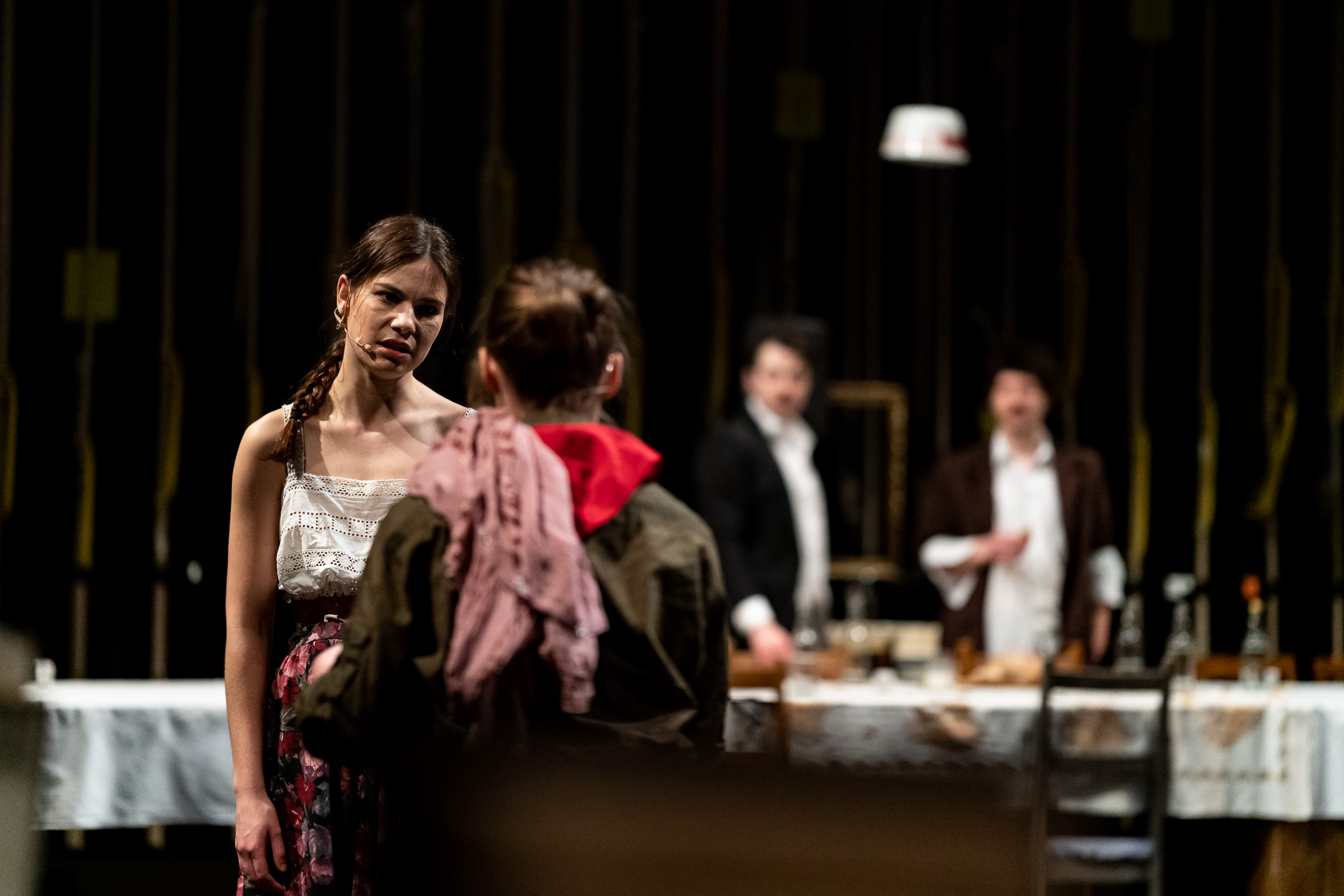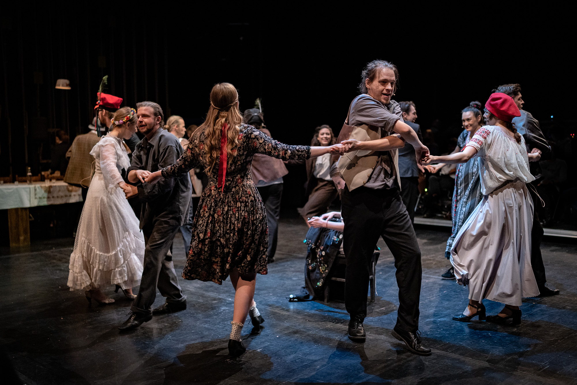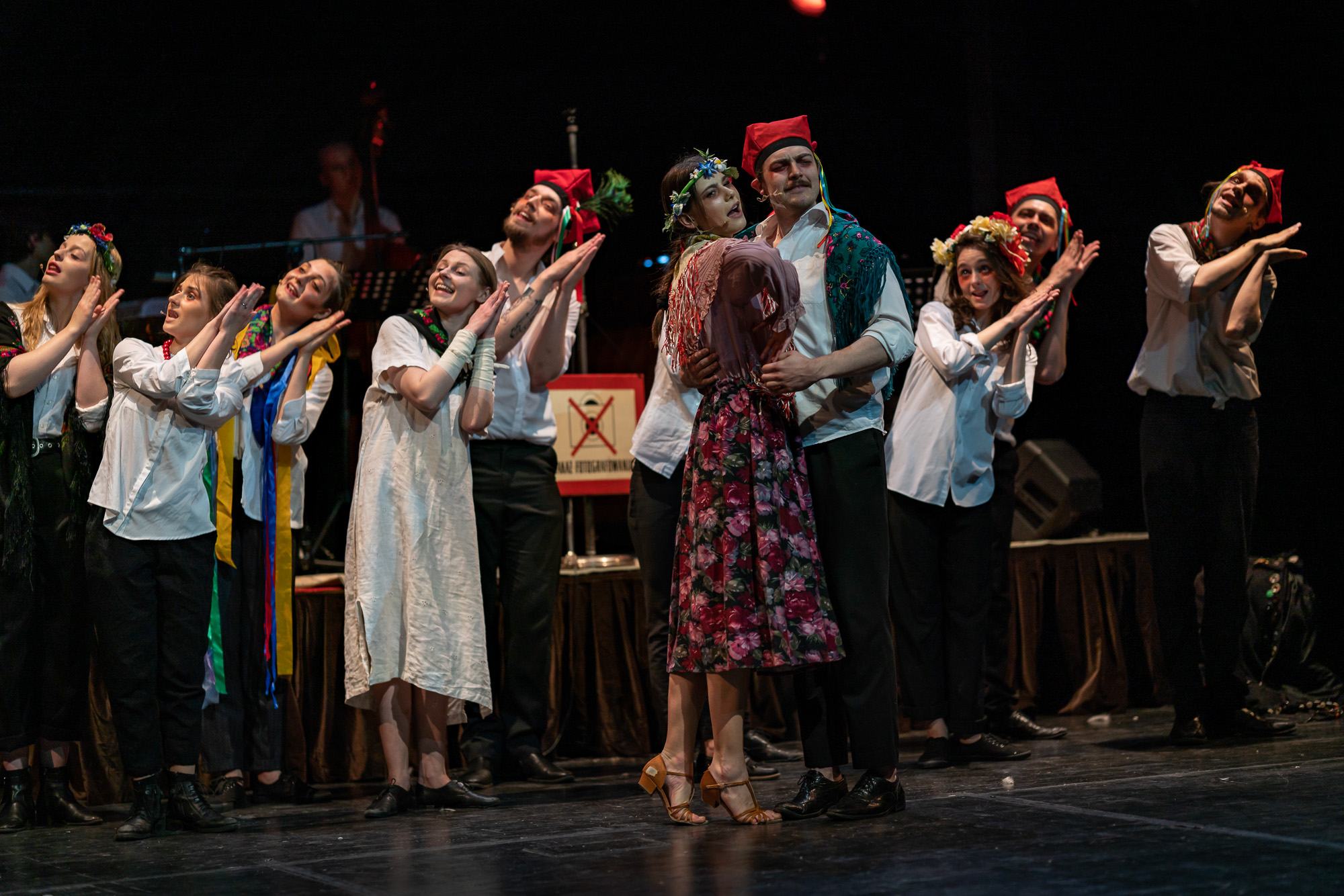 Spektakl dyplomowy z wrocławskiej AST – Wesele w reż. Wojciecha Kościelniaka na podstawie dramatu Stanisława Wyspiańskiego, z muzyką Mariusza Obijalskiego.