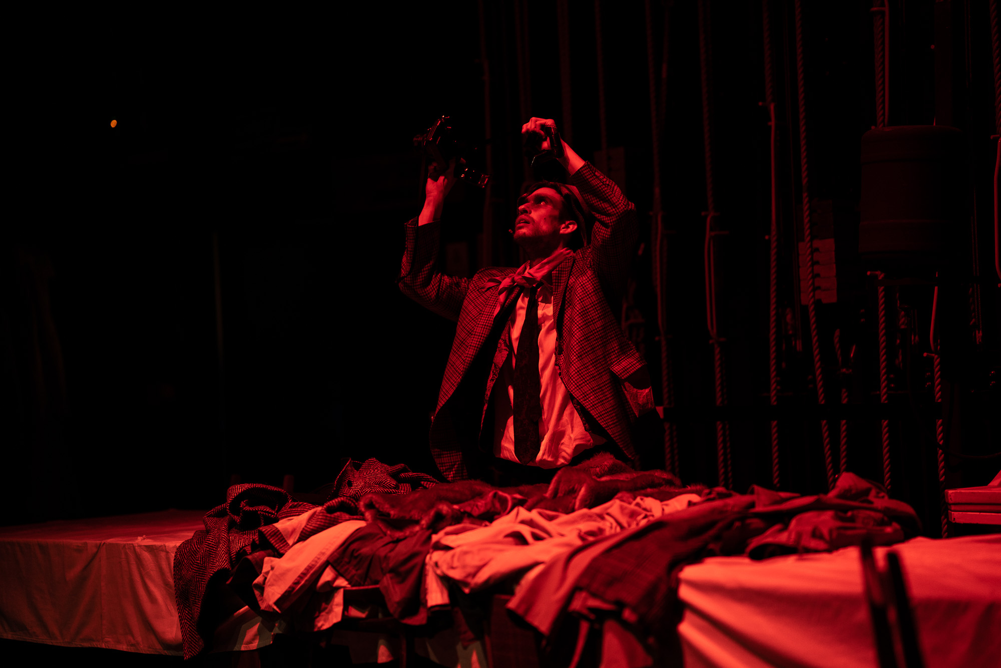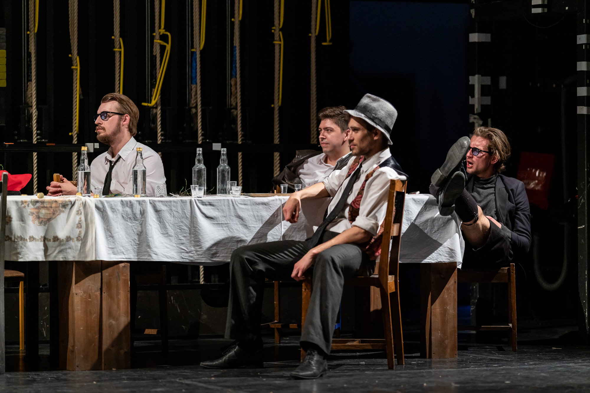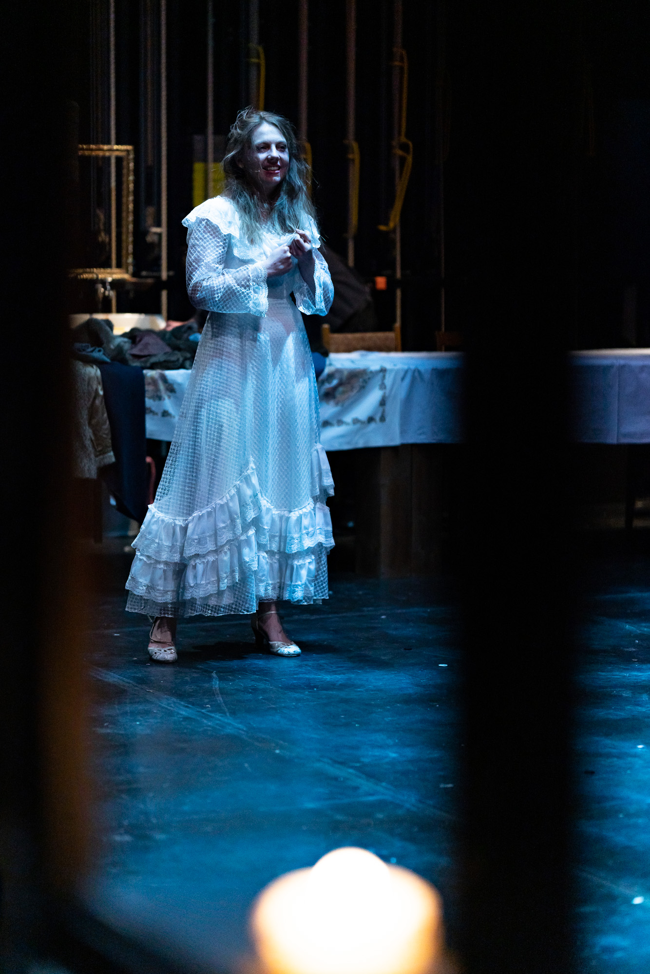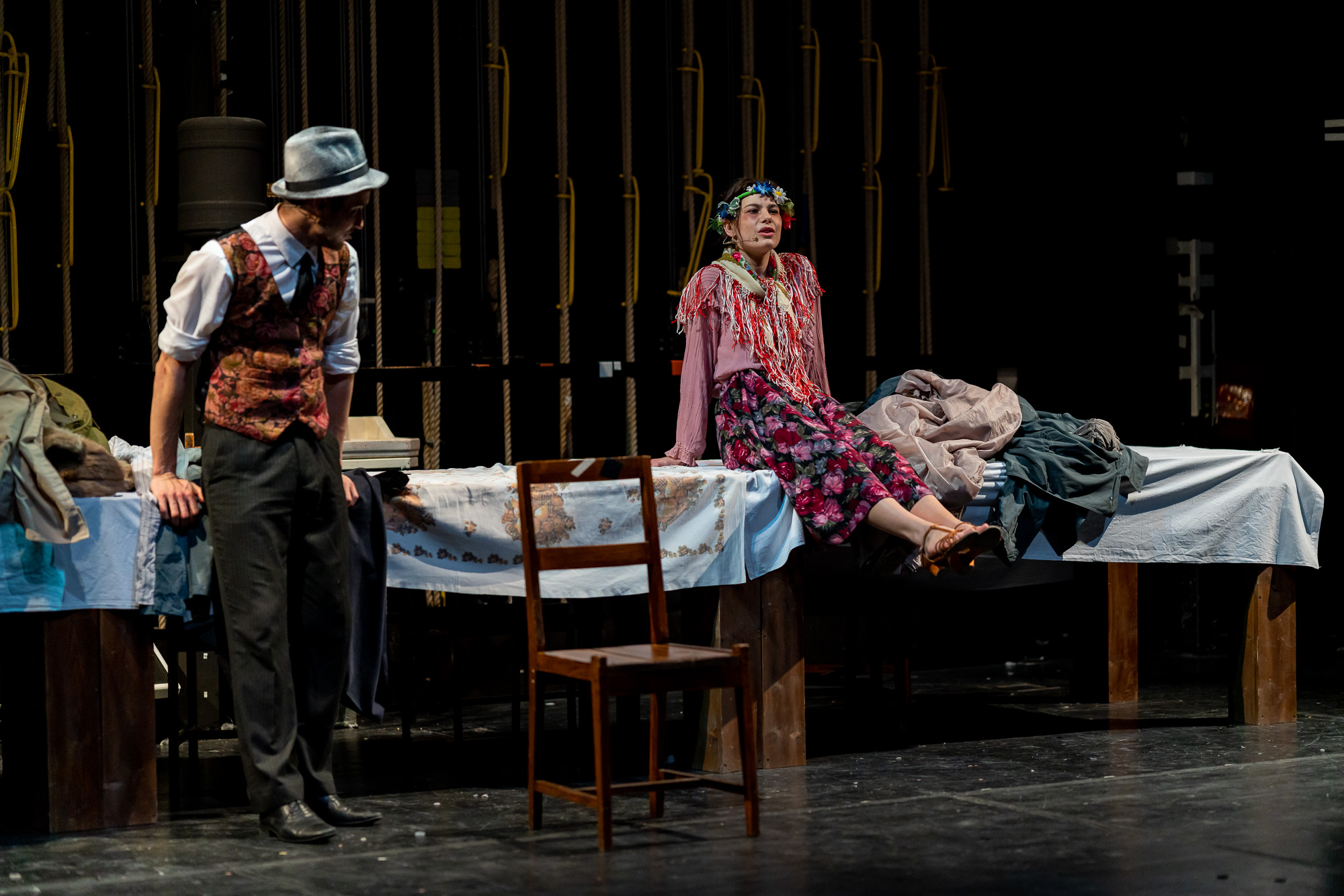 Spektakl dyplomowy z wrocławskiej AST – Wesele w reż. Wojciecha Kościelniaka na podstawie dramatu Stanisława Wyspiańskiego, z muzyką Mariusza Obijalskiego.