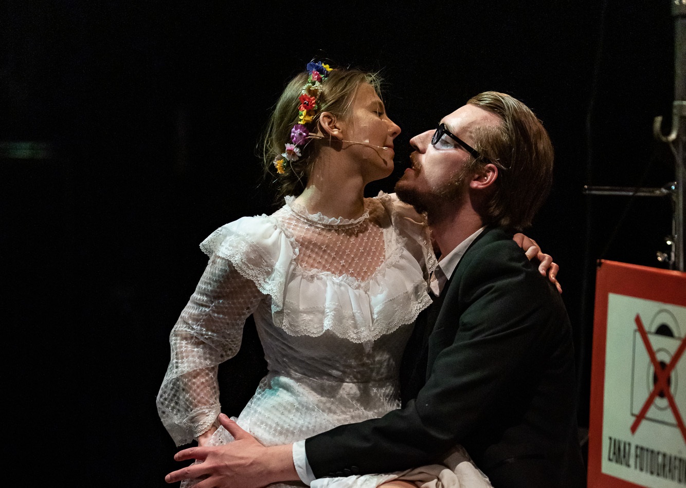 Spektakl dyplomowy z wrocławskiej AST – Wesele w reż. Wojciecha Kościelniaka na podstawie dramatu Stanisława Wyspiańskiego, z muzyką Mariusza Obijalskiego.