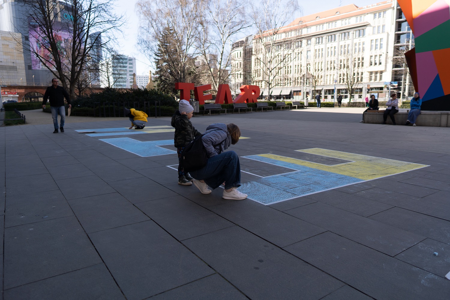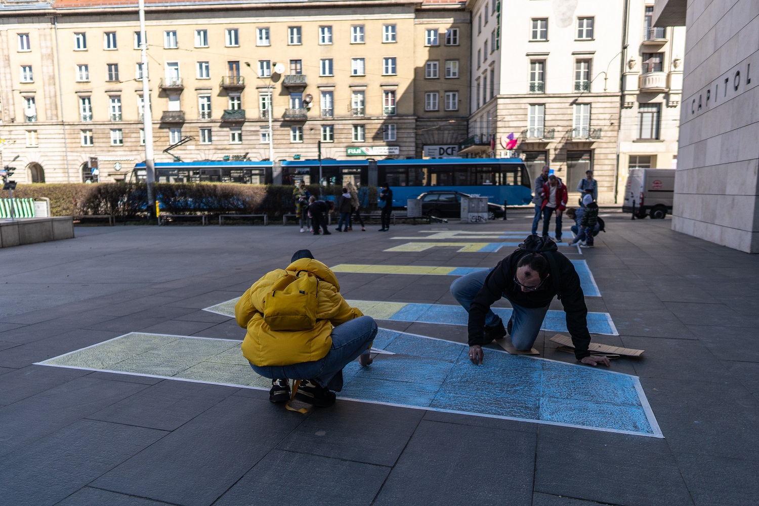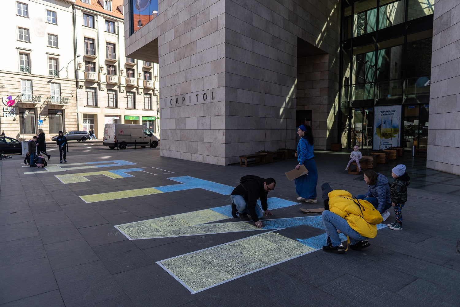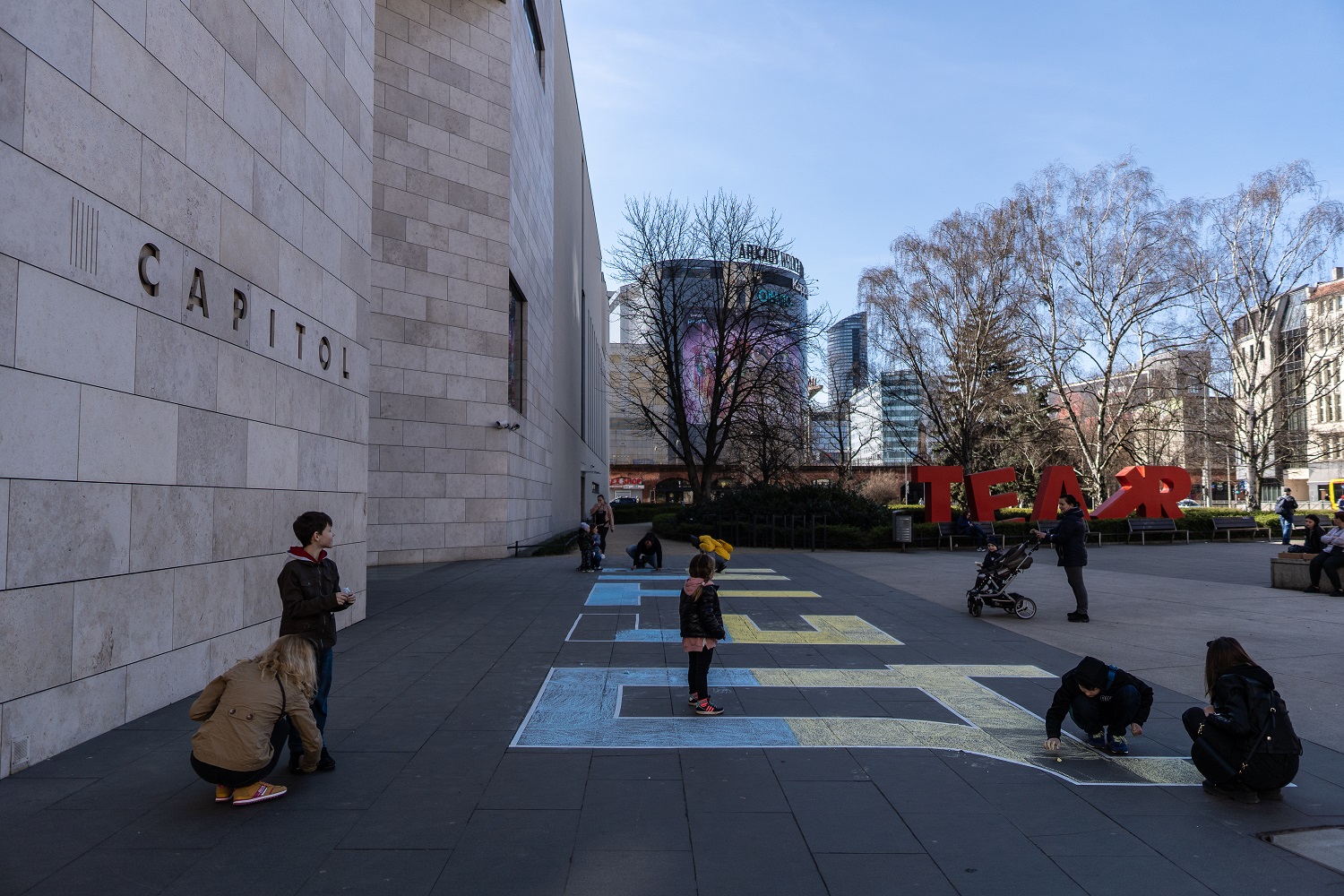 W odpowiedzi na apel i orędzie Polskiego Ośrodka Międzynarodowego Instytutu Teatralnego ITI autorstwa Kolektywu Dramatycznego: Moniki Strzępki, Agaty Adamieckiej, Doroty Kowalkowskiej, Małgorzaty Błasińskiej, Moniki Dziekan, Jagody Dutkiewicz, stworzyliśmy dziś wspólnie przy wejściu do Capitolu napis ДЕТИ.
