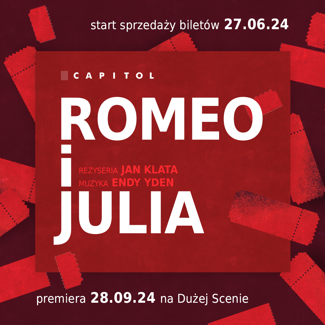 27 czerwca rozpoczęła się sprzedaż biletów na spektakl „Romeo i Julia” w reż. Jana Klaty! Bilety można kupić na wrześniowe, październikowe i listopadowe terminy! Premiera spektaklu odbędzie się 28 września na Dużej Scenie.
