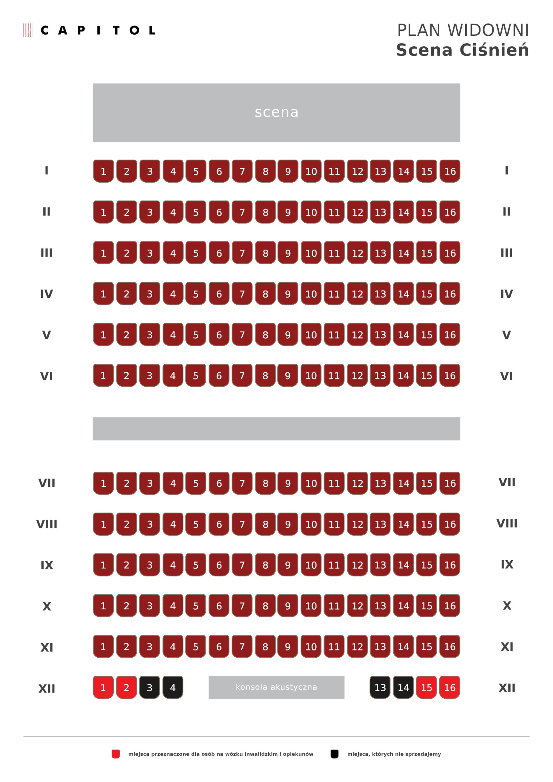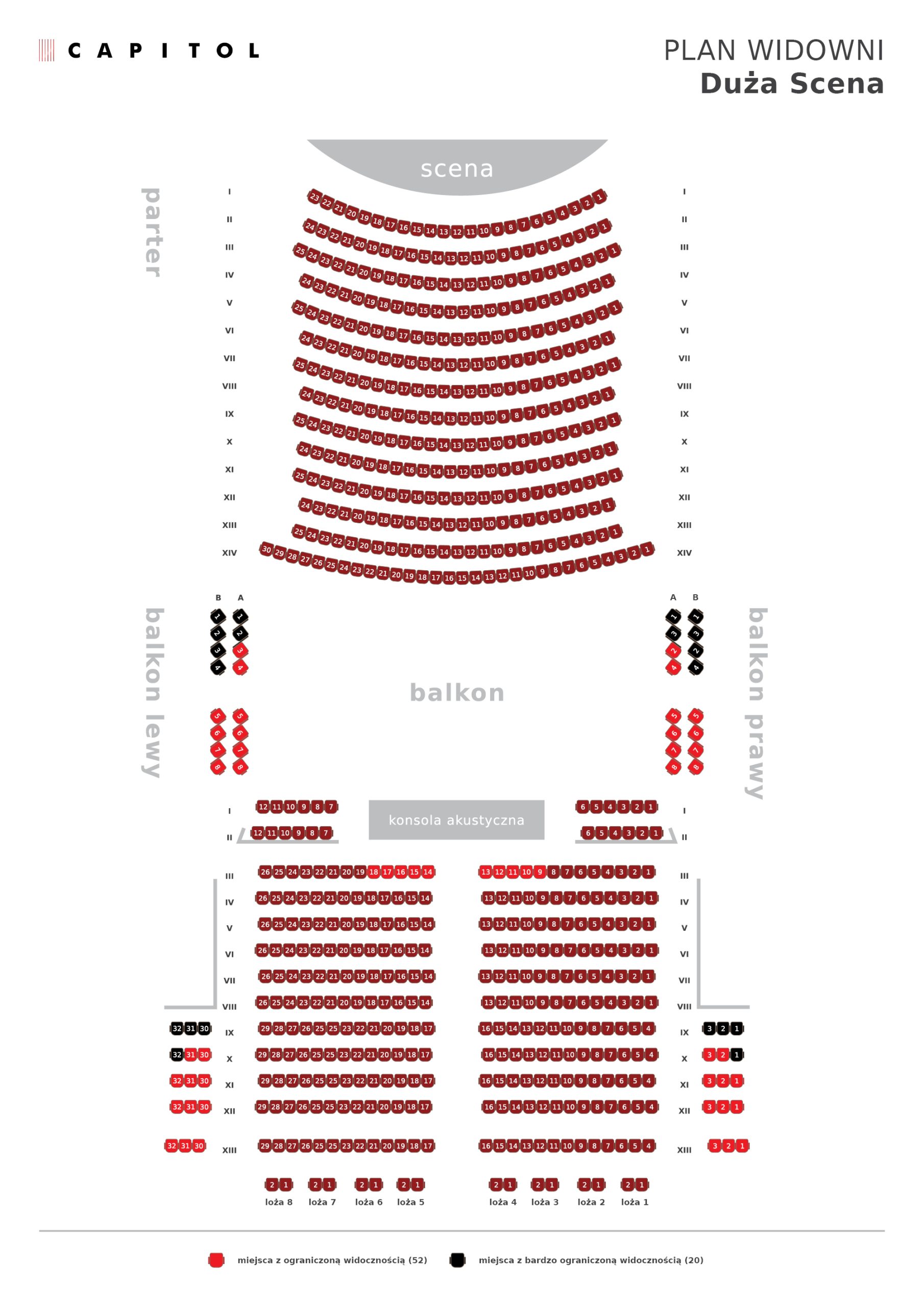 Zobacz plan widowni Dużej Sceny na dole strony / Widoczność w sektorze III jest ograniczona