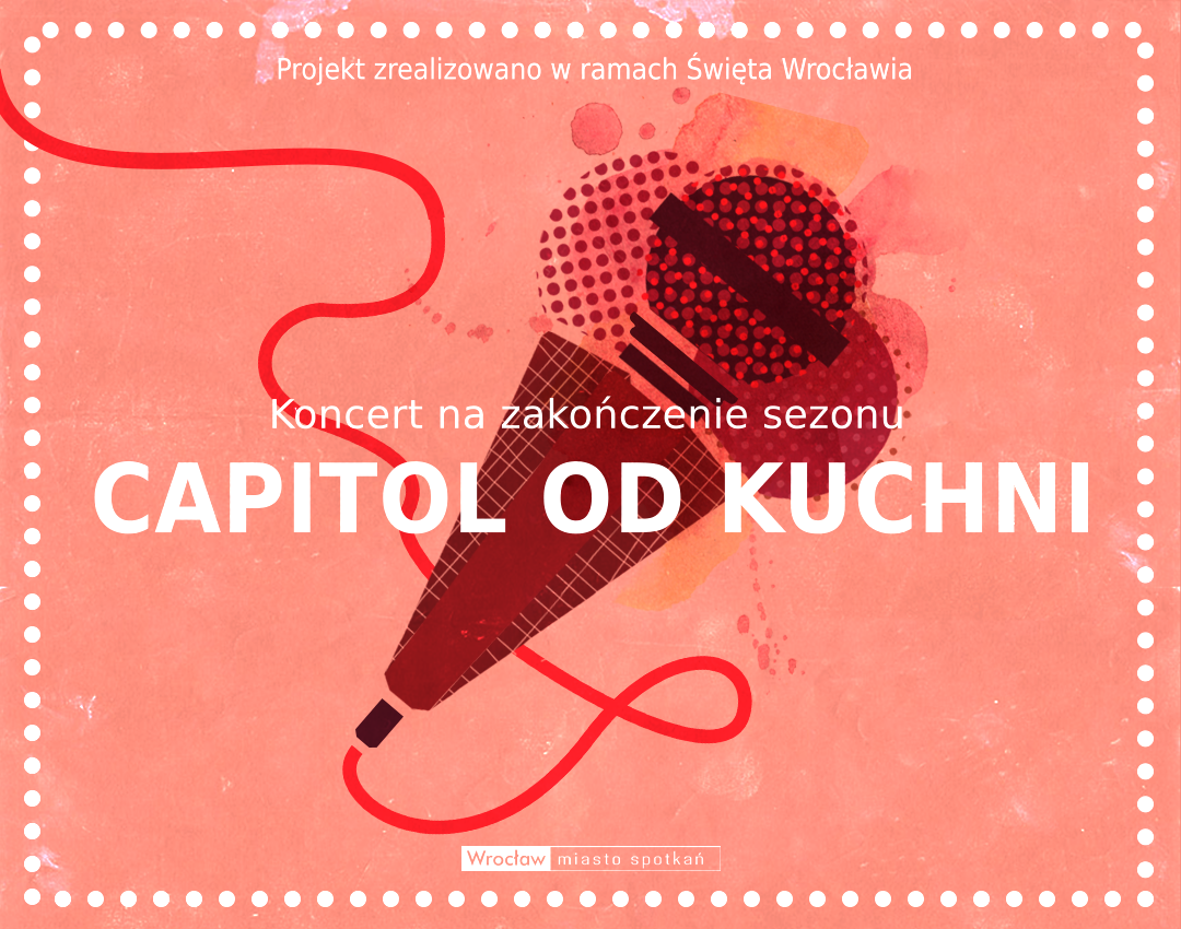 Koncert „Capitol od kuchni” z okazji zakończenia sezonu artystycznego, odbędzie się w piątek 23 czerwca o godz. 19.30 na skwerze przy ulicy Bogusławskiego. W wydarzeniu wezmą udział aktorki i aktorzy Teatru Muzycznego Capitol, którzy zaśpiewają przeboje z repertuarowych spektakli teatru. Koncert poprowadzi dyrektor artystyczny Capitolu, Konrad Imiela.