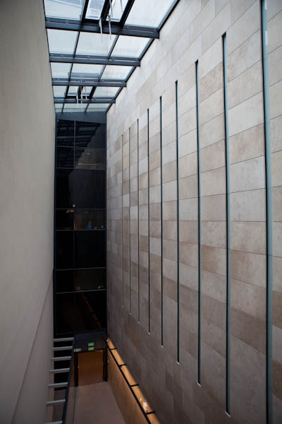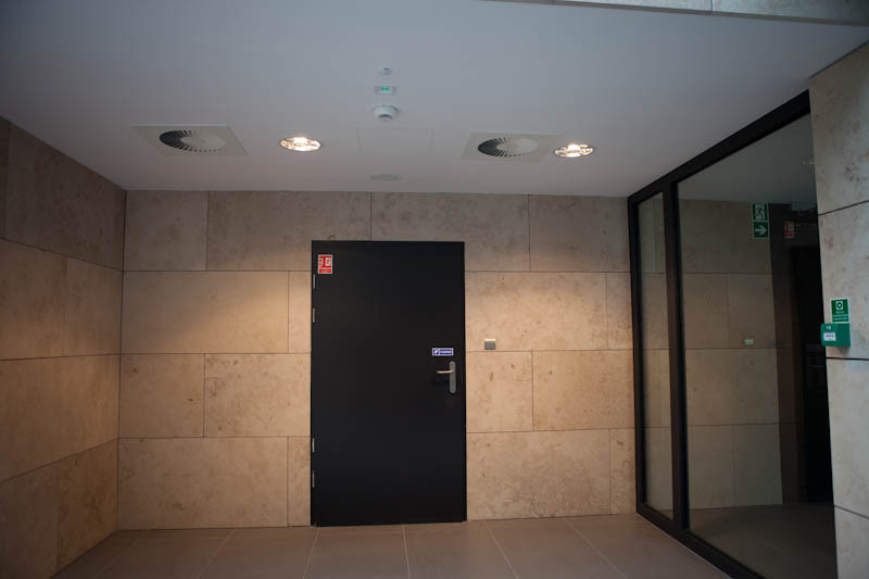 Z Podwórka wchodzimy do foyer parteru i do łącznika. To – wraz z widownią Dużej Sceny – część teatru, ocalała ze zniszczeń wojennych. Poddana pieczołowitej renowacji wg projektu arch. Anny Morasiewicz, błyszczy teraz świetnością modernizmu w najlepszym wydaniu. Drugiego tak efektownego i tak starannie odrestaurowanego wnętrza z tamtej epoki w Polsce nie ma.