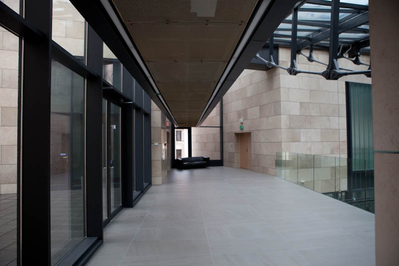 W pierzei zabudowy od strony ul. Piłsudskiego starano się wyraźnie zaznaczyć historyczny układ przestrzenny. Wprowadzenie przeszklonego „śladu” niezwykłej, przedwojennej fasady Capitolu i świetlnej reklamy teatru nad wejściem oddaje niezwykłość iluminacyjno-materiałową nieistniejącego już budynku.