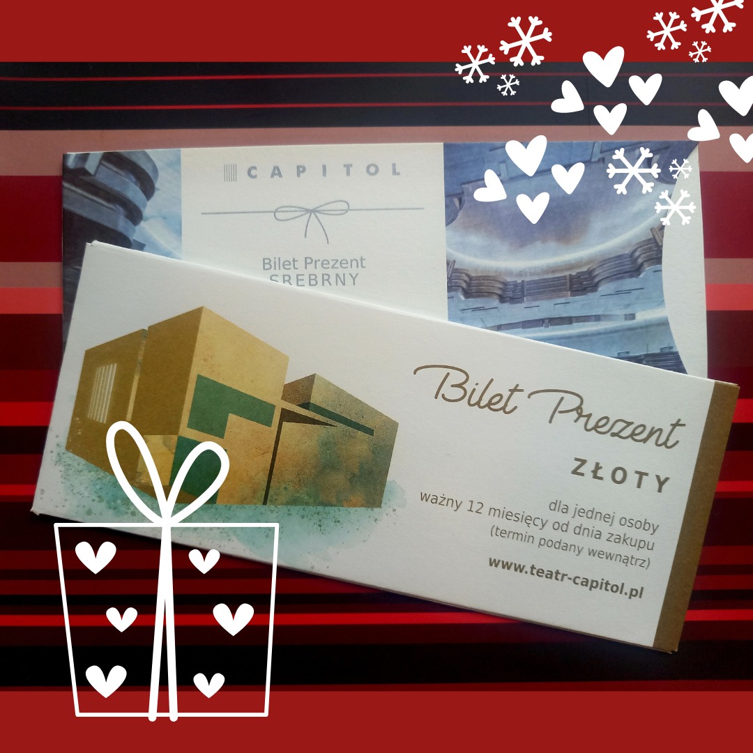 Bilet Prezent Złoty można zamienić na jeden bilet na spektakl na dowolnej scenie Capitolu, a Bilet Prezent Srebrny – na jeden bilet na spektakl na dowolnej scenie Capitolu z wyjątkiem Dużej Sceny. Taki Bilet-Prezent jest ważny przez rok od daty zakupu, a obdarowana osoba decyduje sama, na jaki spektakl zechce się wybrać.
