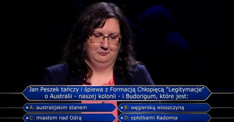 A wszystkie zaskoczone oraz wszystkich zaskoczonych pytaniem z teleturnieju (kto to wymyślił???) zachęcamy do przypomnienia sobie fenomenalnej gali 37. PPA „Budorigum, czyli amerykańscy naukowcy o polskim Wrocławiu” dostępnej u nas na płycie DVD. Można nie tylko zobaczyć jak Jan Peszek tańczy i śpiewa z Formacją Chłopięcą „Legitymacje”, ale i przypomnieć sobie miejską legendę Jasia Pawie Oczko, dać się ponieść minikonikom i posłuchać o Mieszkowskim Pierwszym.